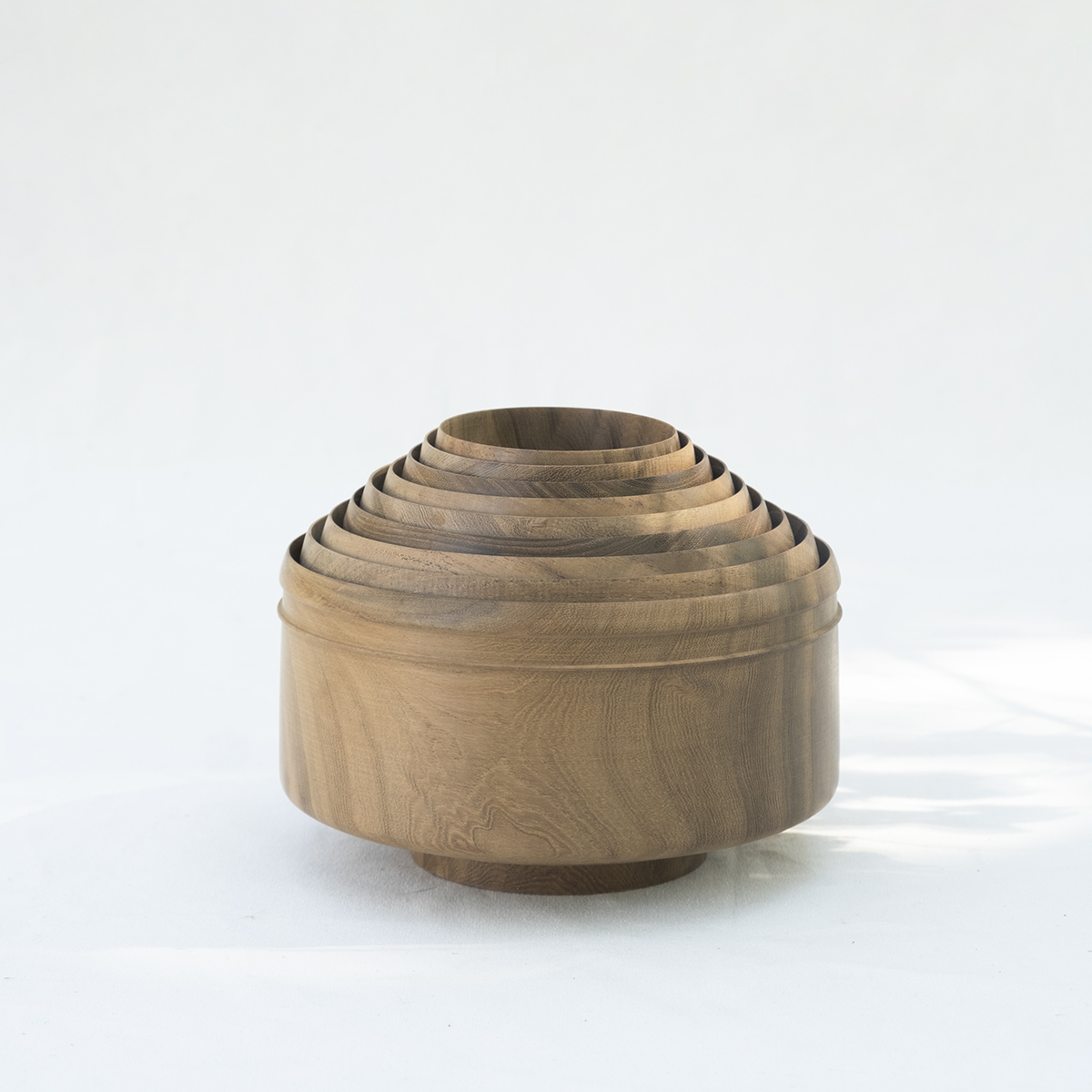 KUNDA is a set of nine hand-crafted wooden bowls — each carved with care from the heart of a single section of Rohida wood. Inspired by the bowls of India’s Jain monks, this nesting set is a poetic expression of simplicity, mindful living, and artisanal mastery.